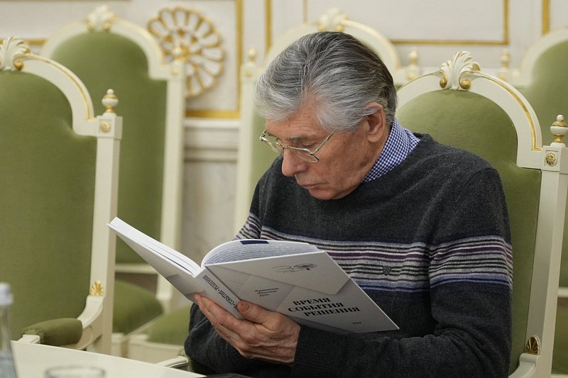В ходе приема руководитель аппарата Мурманской областной Думы Светлана Виденеева выступила с презентацией документально-публицистического издания, выпущенного к юбилею регионального парламента "Время. События. Решения". В книгу вошли самые значимые этапы создания и развития законодательного органа Мурманской области, а также воспоминания участников тех событий, документы и фотоматериалы.