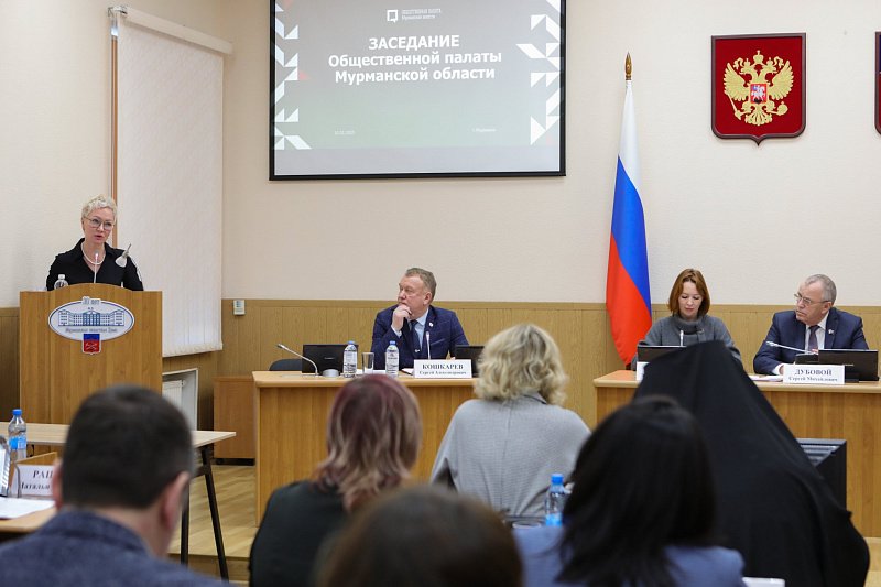 Новый состав палаты приветствовали Председатель областной Думы Сергей Дубовой и и.о. министра внутренней политики Мурманской области Эвелина Макарова.