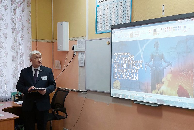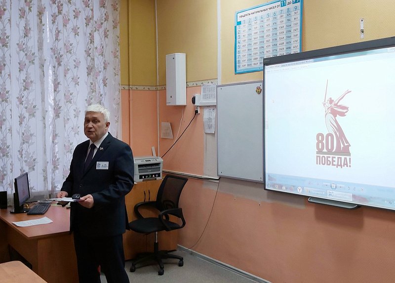 Главная тема встречи - празднование 80-летия Победы советского народа в Великой Отечественной войне. Речь шла о блокаде Ленинграда немецко-фашистскими войсками в годы Великой Отечественной войны. С использованием кинохроники, исторических фотографий и музыки рассказал о 872 днях блокады города.