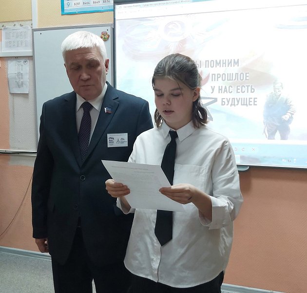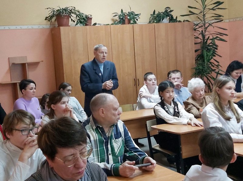 Участниками встречи стали члены городского Совета ветеранов и клуба "Дети военного Мурмана", учащиеся седьмого класса школы.