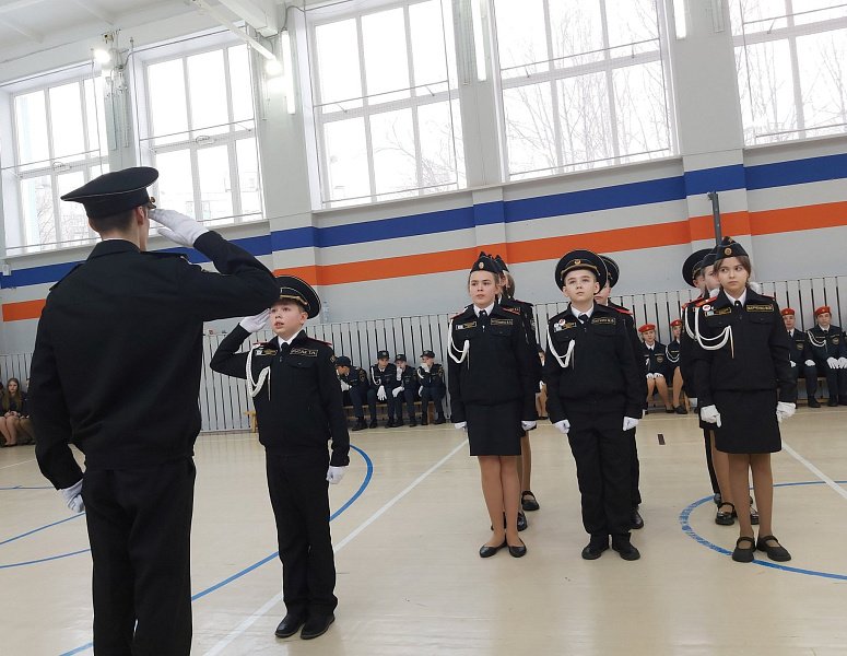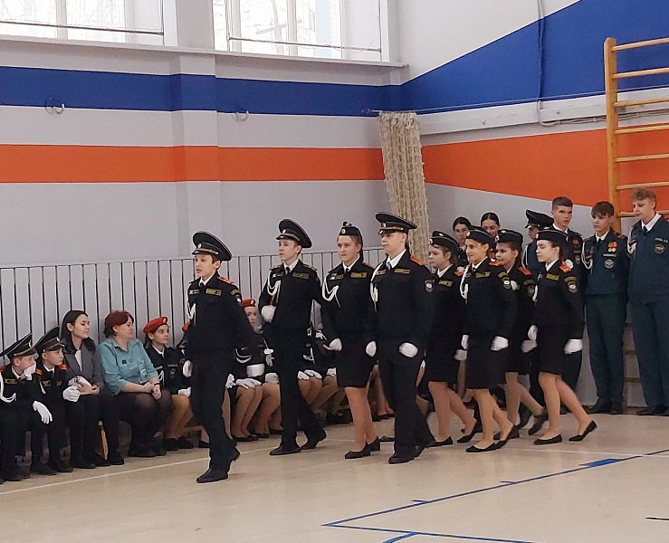 После торжественного мероприятия состоялся смотр-конкурс строя и песни кадетов.  Ученики продемонстрировали высокие навыки строевой подготовки и песни.