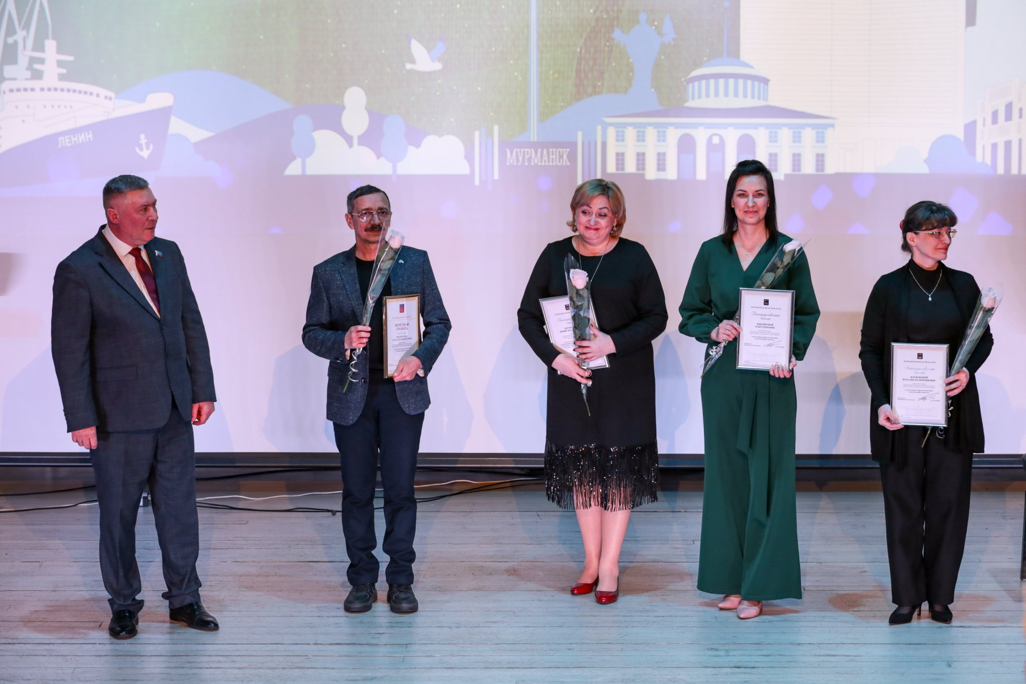 – Глубоко убежден, что в сфере культуры не бывает людей случайных и равнодушных. Вы те удивительные люди, которые превращают обыденность в искусство, прошлое – в живую память. Вы строите мосты между эпохами и делаете наш мир ярче. Вы творцы, энтузиасты, люди, беззаветно влюбленные в свое дело. Благодаря вашим идеям, творческим находкам развивается духовное здоровье северян от мала до велика. Вы помогаете молодому поколению приобщаться к истокам русской культуры, видеть в ней все самое лучшее.Спасибо вам за щедрость и широту души, за то, что дарите мурманчанам радость общения с прекрасным миром искусства. Пусть ваши идеи всегда находят поддержку, а проекты – воплощаются в жизнь!