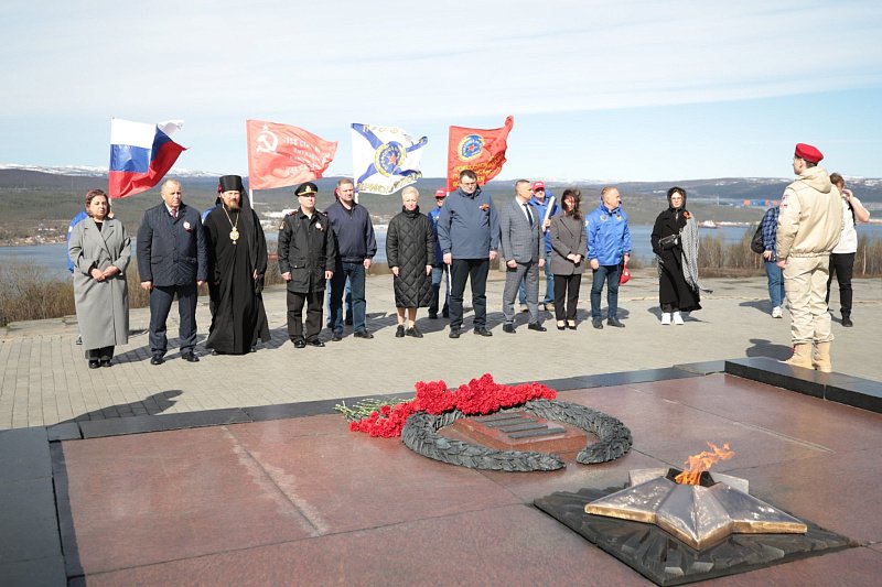У мемориального комплекса «Защитникам Советского Заполярья в годы Великой Отечественной войны» прошел торжественный митинг, посвященный старту патриотической акции. В нем приняли участие Председатель регионального парламента Сергей Дубовой, депутат Любовь Черепанова, депутат Государственной Думы Евгений Федоров, представители Северного флота, духовенства, общественных организаций.
