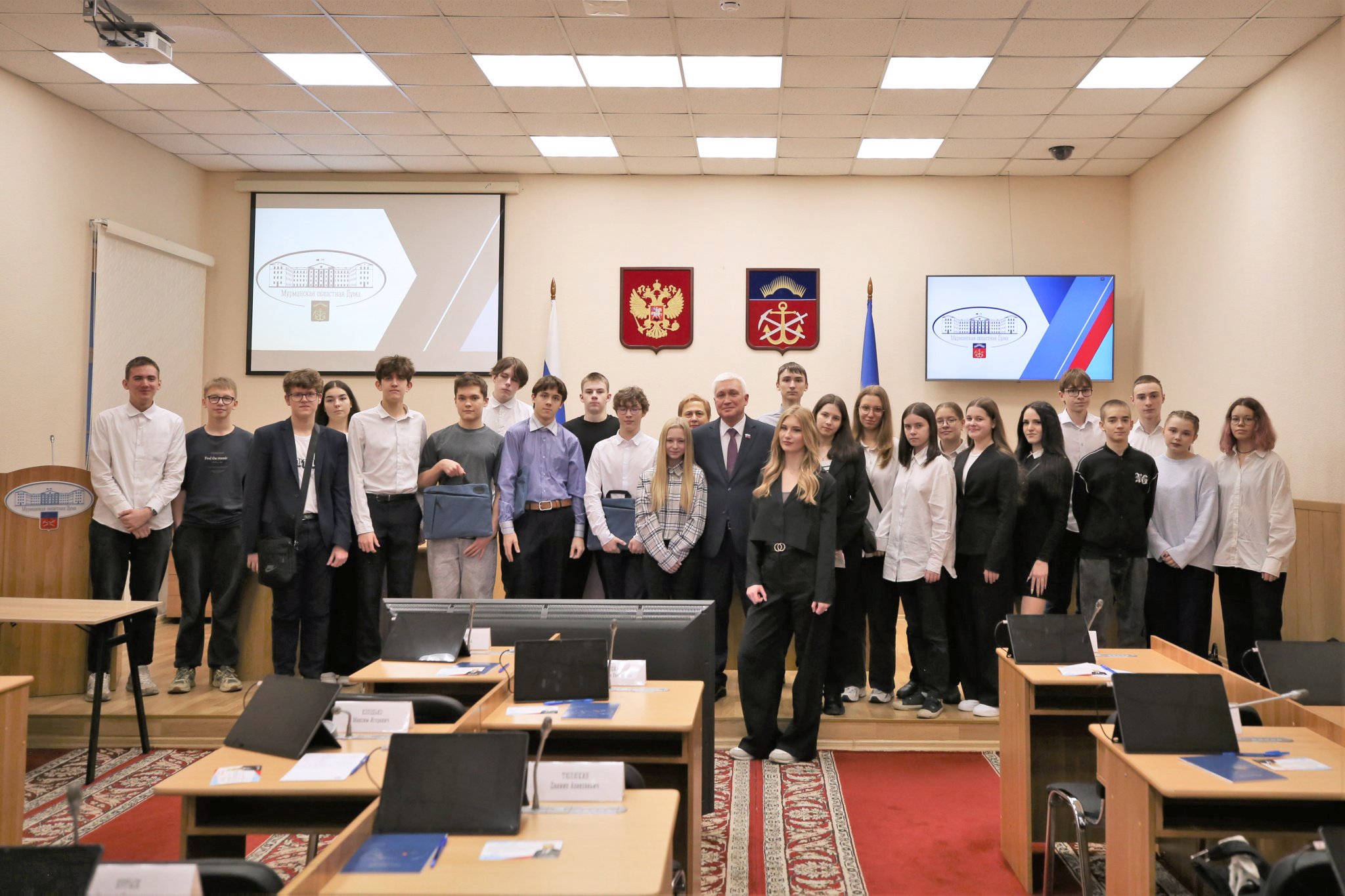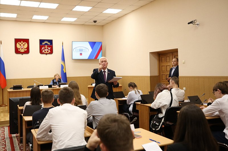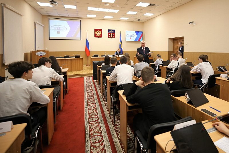 Учащихся гимназии № 6 тепло приветствовал депутат регионального парламента Михаил Белошеев. Он рассказал об истории и сегодняшнем дне законодательного органа власти Мурманской области, о представленных в нем политических партиях и работе депутатов, а также ответил на вопросы детей.