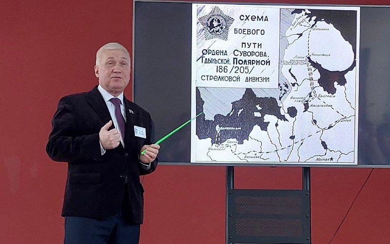 Тема гостиной: «Сегодня на Мурманском направлении». Начало встречи посвятили Дню воинской славы России — 27 января 1944 года — День полного снятия блокады Ленинграда. С помощью кадров кинохроники вспомнили о героическом подвиге ленинградцев. Особое внимание обратил на тяжелейшие условия ведения боевых действий на северном направлении Карельского фронта. Подробно рассказал о героической истории нашей Полярной дивизии, о вкладе оленно-транспортных батальонов в приближение Победы, о важности работы по сохранению исторической памяти и увековечению подвигов защитников Родины. Познакомил молодых жителей города Феодосии с биографией и подвигом участника специальной военной операции Героя России Андрея Александровича Спирина.