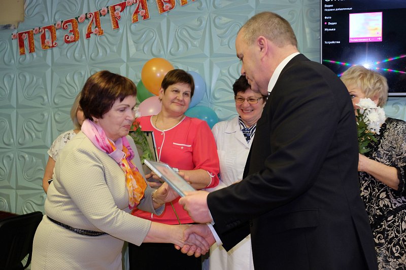 С юбилеем коллектив медицинского учреждения поздравили спикер регионального парламента Сергей Дубовой и председатель профильного комитета Думы Надежда Максимова
