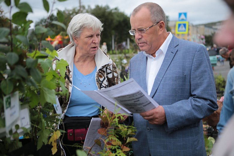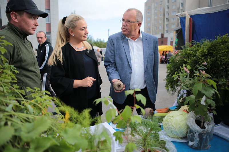 Глава областного парламента осмотрел торговые ряды с рыбной, мясной и молочной продукцией, отметил богатое разнообразие овощей, зелени и саженцев, выращенных в северных условиях.