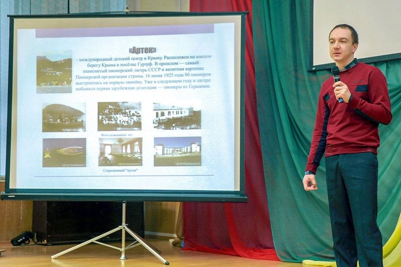 Перед школьниками выступил спикер регионального парламента Сергей Дубовой. Он отметил, что история Крыма — это часть истории нашей страны, важно бережно и ответственно относится к общему прошлому ради будущего: