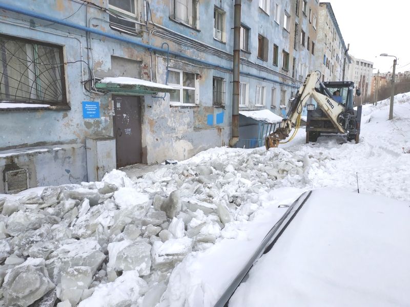 Чтобы разбить десятки сантиметров льда и расчистить придомовую территорию, потребовалось почти восемь часов. Работу осложняли припаркованные вдоль домов автомобили, владельцев которых не сразу удалось разыскать, а также машины, давно «вросшие» в ледяные толщи.