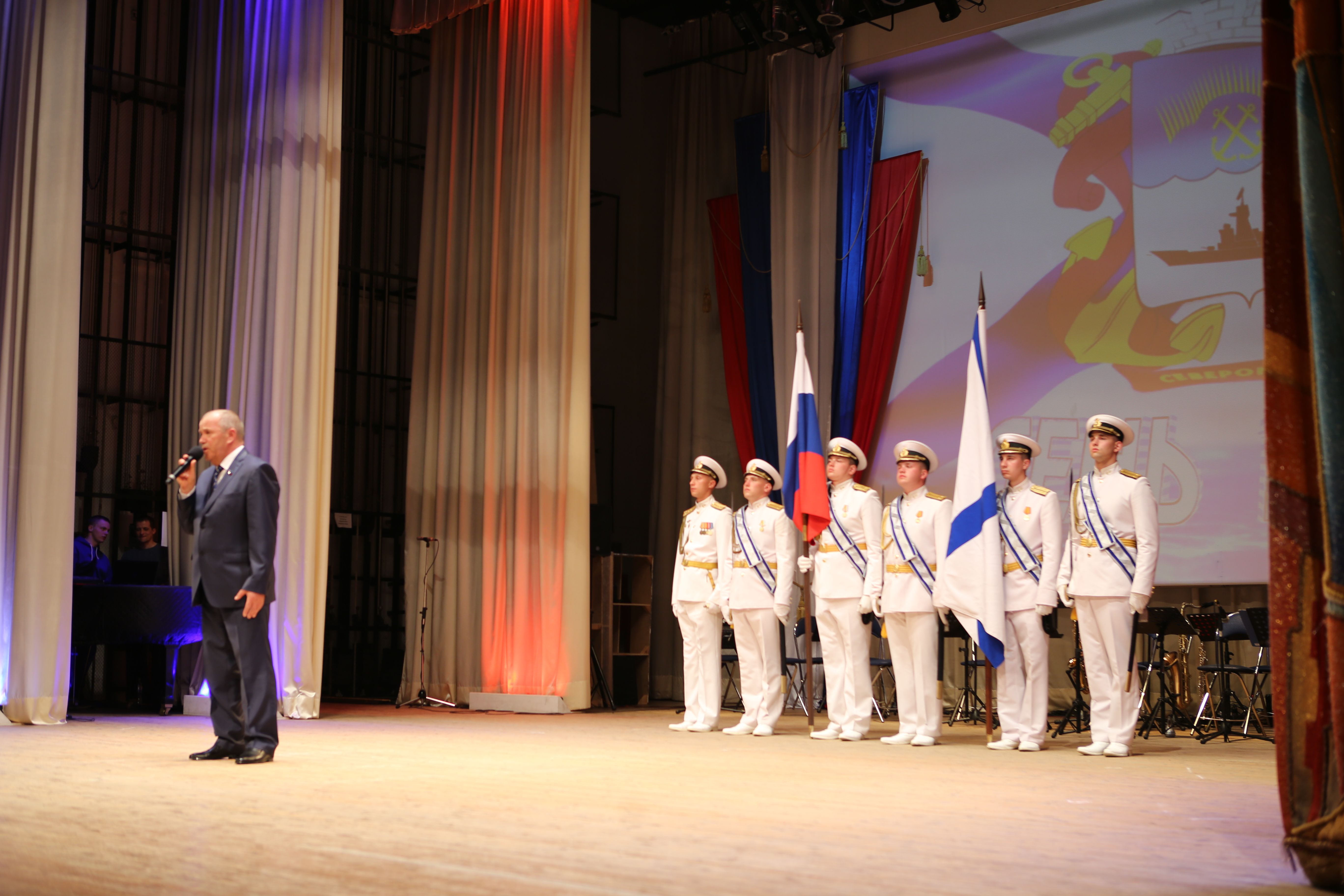 От имени Мурманской областной Думы на праздничном вечере в Доме культуры «Строитель» военнослужащих и ветеранов Северного флота поздравил глава регионального парламента Сергей Дубовой.