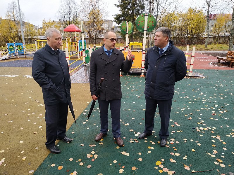 Вместе с главой Ковдорского района Сергеем Сомовым и председателем районного Совета депутатов Александром Филипишиным парламентарии провели мониторинг  работ на различных объектах, обустраиваемых в рамках национальных проектов, региональных и муниципальных программ, а также плана "100 шагов Правительства Мурманской области".