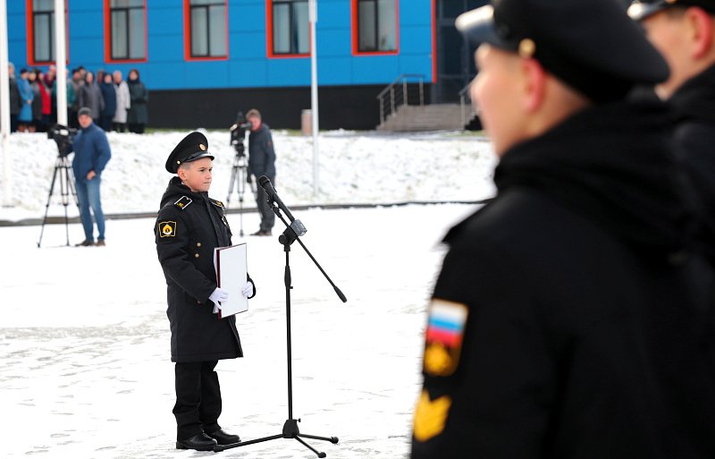 На плацу филиала Нахимовского военно-морского училища 80 мальчишек торжественно произнесли клятву. На церемонии присутствовали Командующий Северным флотом Александр Моисеев, представители законодательной, исполнительной власти региона, муниципалитета и родители юных воспитанников.