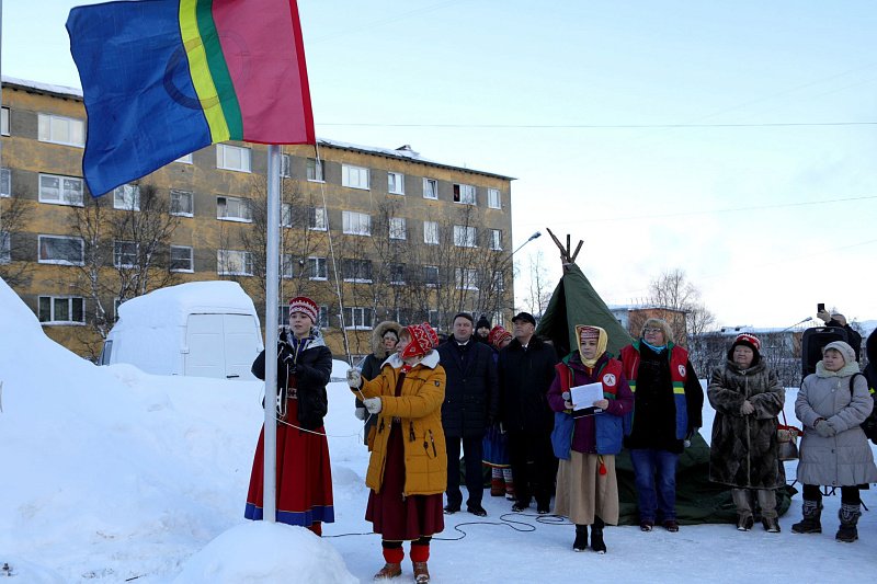 В Мурманске праздничные мероприятия начались с торжественного митинга и поднятия саамского флага. Собравшихся поздравил Председатель региональной Думы Сергей Дубовой.