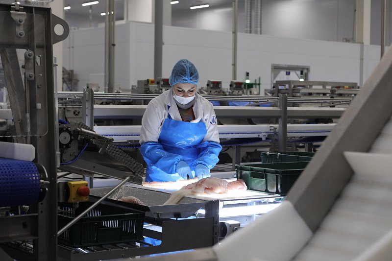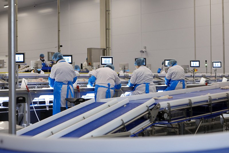 Гости посмотрели производственные цеха, в которых установлено современное оборудование. Его подбором и монтажом занималась исландская компания Valka. Мощность завода по переработке составляет 63,7 тонн сырья в сутки, в комплекс также входит мощный холодильник объемом 3000 тонн.