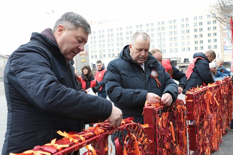 В преддверии Дня Великой Победы особую праздничную атмосферу в муниципальных образованиях области создает и оформление улиц и площадей. В столице Кольского края в рамках акции «Пламя Победы» на площади Пять углов установлена инсталляция, на которую горожане могут повязать алые ленточки, символизирующие огонь. В их числе были Глава регионального парламента Сергей Дубовой и Первый заместитель Председателя Думы Владимир Мищенко.
