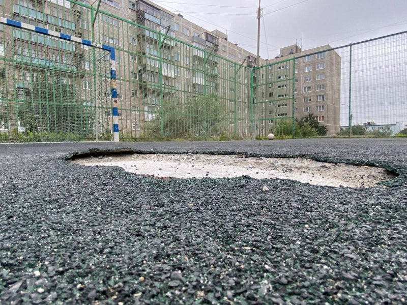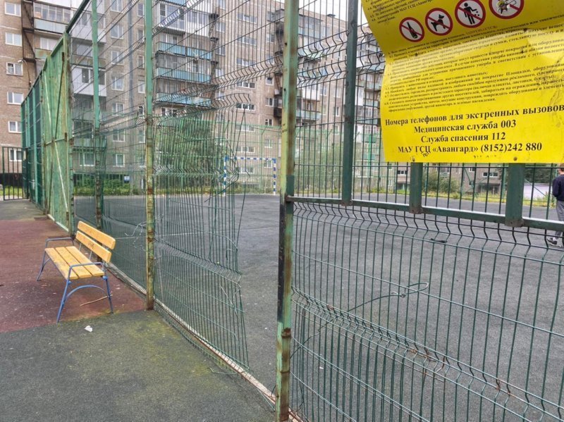 На игровой площадке во дворе дома № 40 по улице Свердлова отсутствует достаточное освещение. Имеющееся – не обеспечивает хороший обзор объекта, прилегающей территории, входа и выхода. Особенно опасным это становится в период полярной ночи. А на спортивной площадке во дворе дома № 33 по улице Юрия Гагарина нарушена целостность ограждения: острые прутья в местах разрывов и повреждений торчат в разные стороны. Похожая история – на улице Дзержинского в Кировске. Там ситуация усугубляется тем, что объект находится на краю крутого склона.