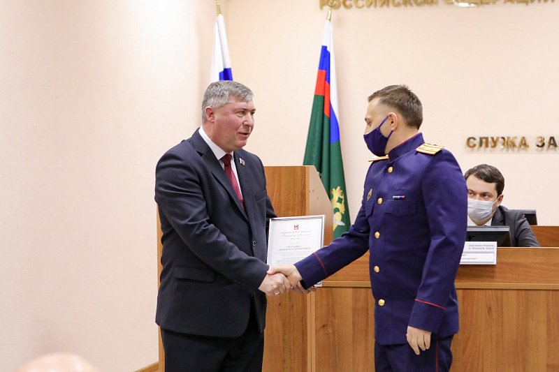 Парламентарий вручил сотрудникам Управления награды областной Думы и пожелал далее оставаться на высоте своего мастерства, добиваться успеха на всех направлениях работы, быть твердыми и принципиальными в служении Закону.