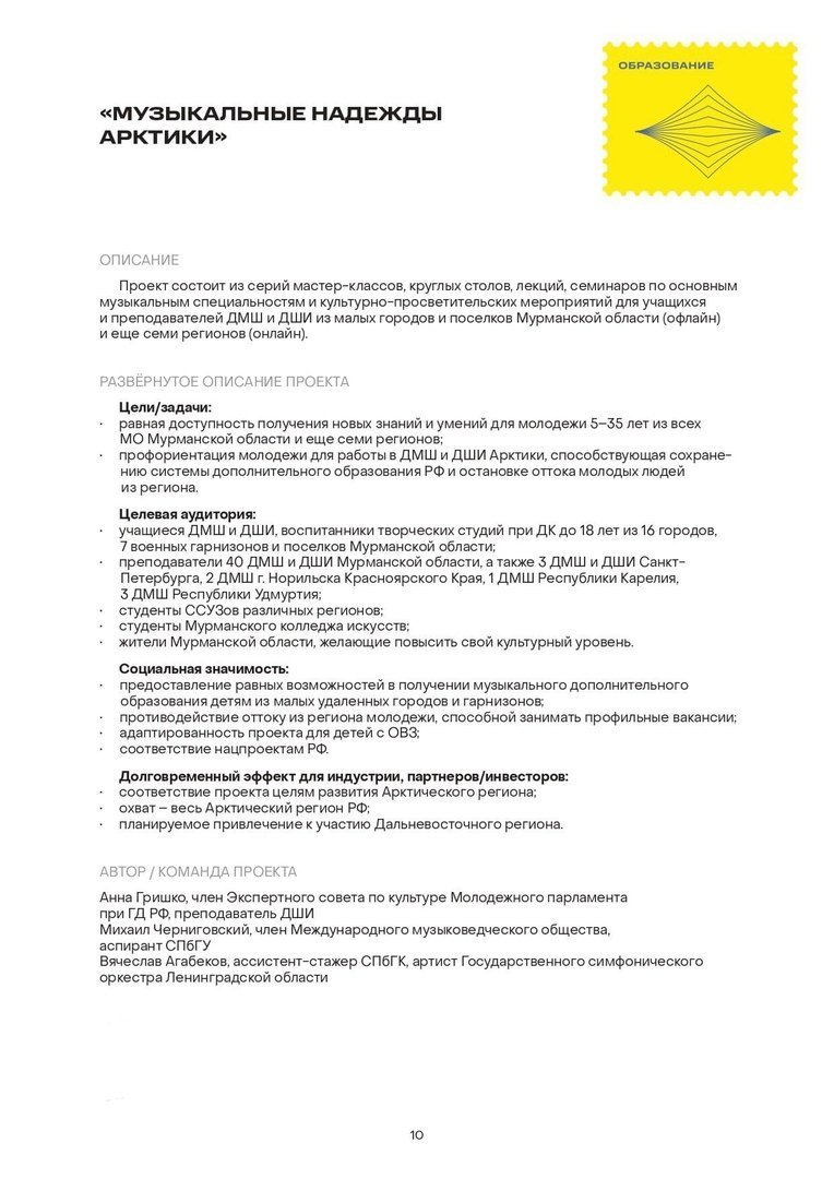 Проект #МузыкальныеНадеждыАрктики, автором которого является Анна Гришко, вошёл в топ-100 лучших проектов России в сфере креативных индустрий по итогам Российской креативной недели в Москве!
