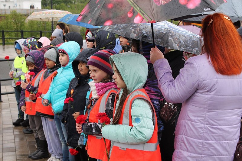 Память всех, кого забрала война, кто умер от голода и лишений в тылу почтили минутой молчания и возложением цветов к мемориалу.