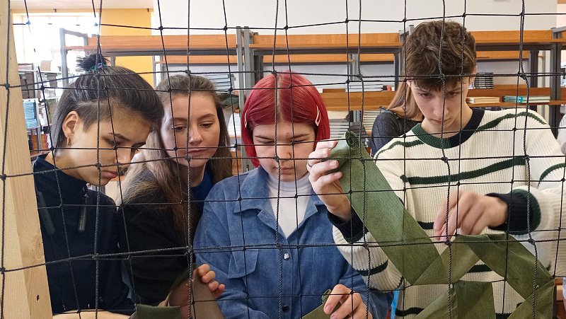 За две недели группа добровольцев изготовила уже шесть сетей, в планах – не менее четырехсот. Для достижения этой цели установлены дополнительные стойки, а в Североморске на базе лицея открыта очередная площадка для плетения.