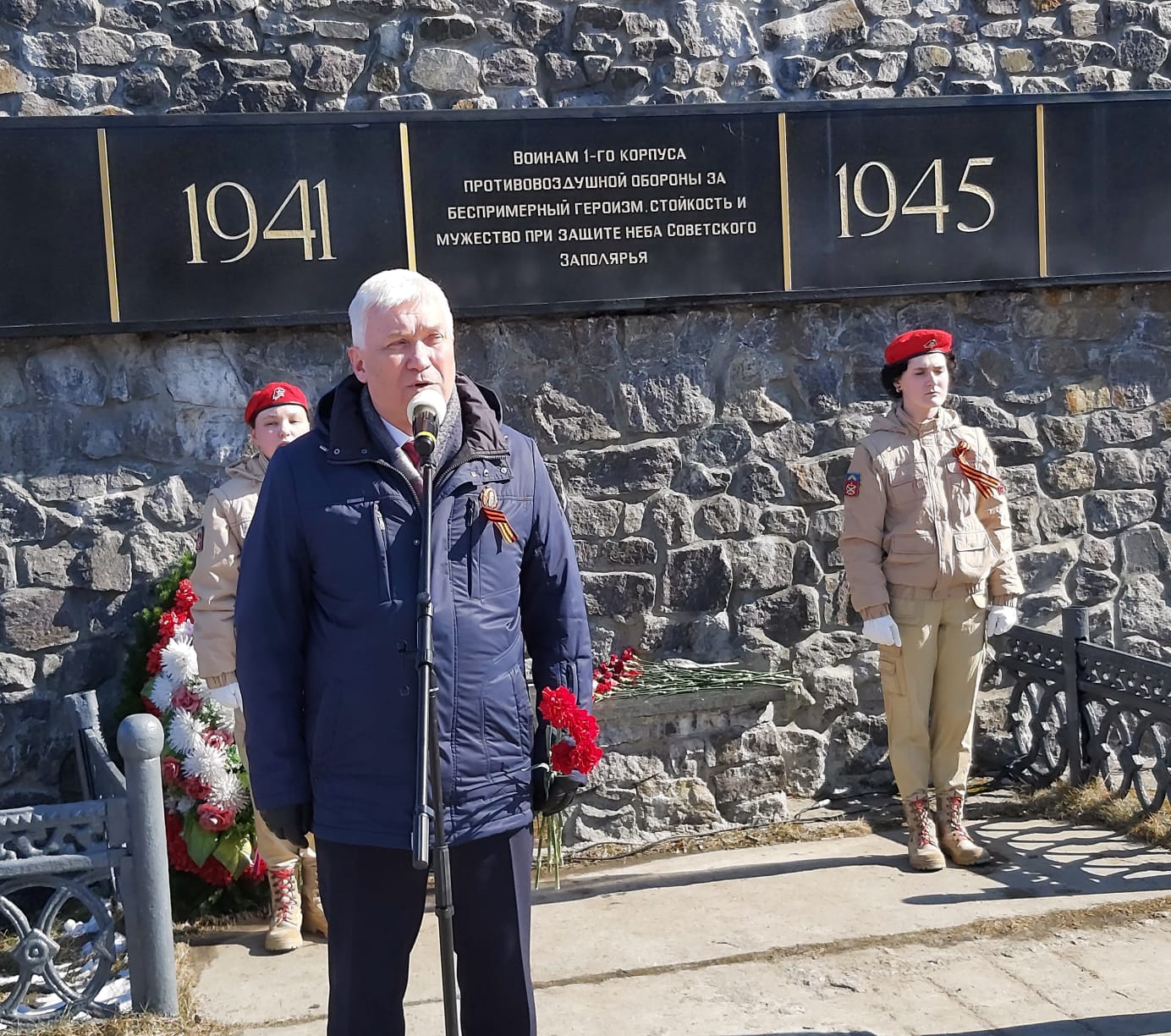 Традиционный митинг прошел и на Абрам-Мысе, на мемориальном комплексе, посвященном воинам первого корпуса ПВО. На этом митинге собрались разные поколения мурманчан: ветераны труда, дети Великой Отечественной войны, юные мурманчане и школьники 16 школы.