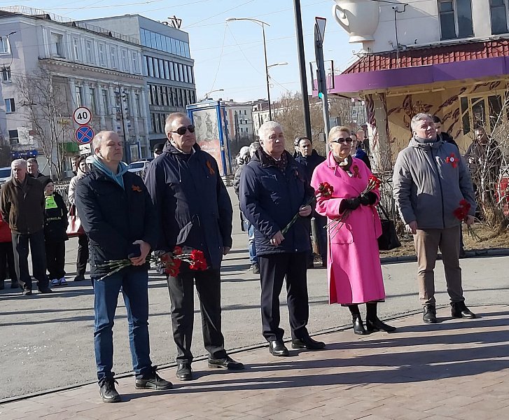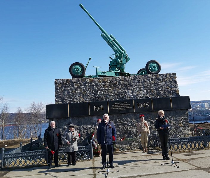 Состоялись торжественные митинги около памятных (мемориальных) объектов, в частности, у памятника Полярной дивизии.