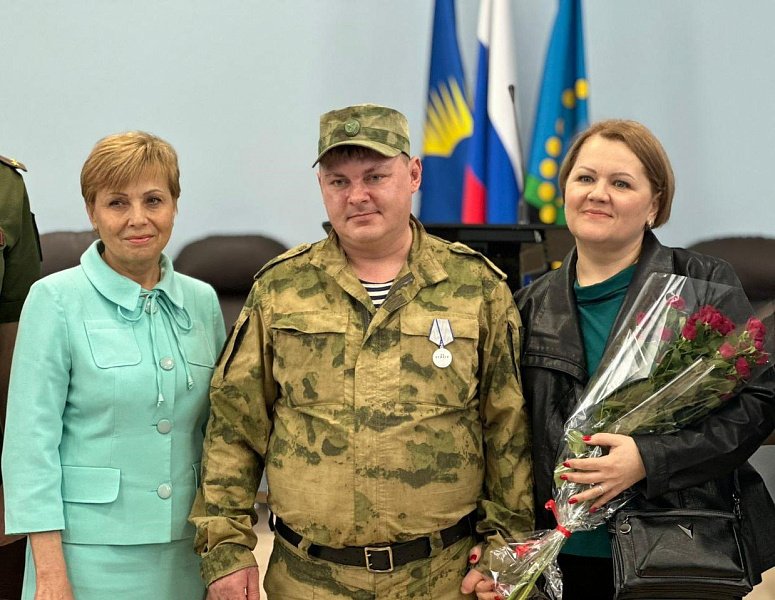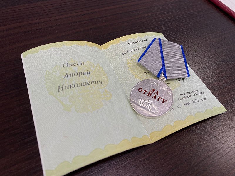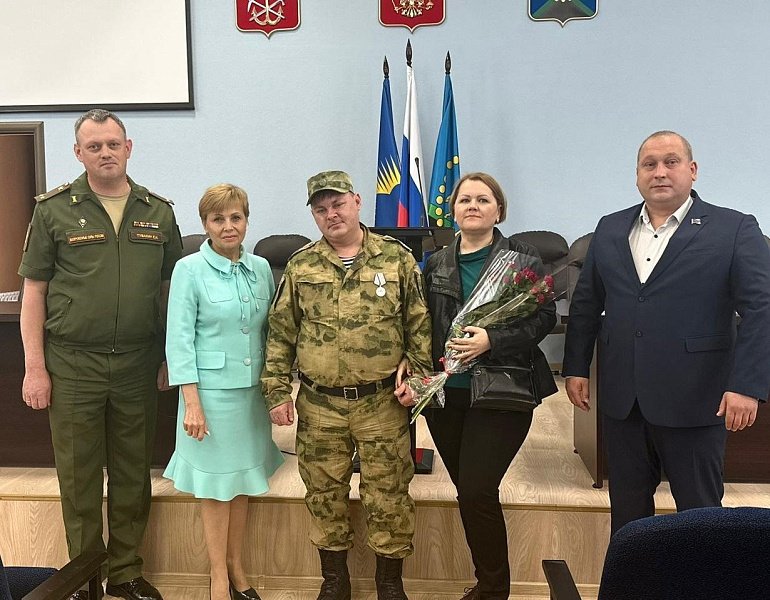 Региональный парламентарий совместно с заместителем главы Администрации города Оленегорска Ларисой Орловой, военным комиссаром Оленегорского и Ловозерского районов Мурманской области Евгением Тувакиным торжественно вручили медаль «За отвагу» герою-оленегорцу, участнику специальной военной операции Андрею Оксову.