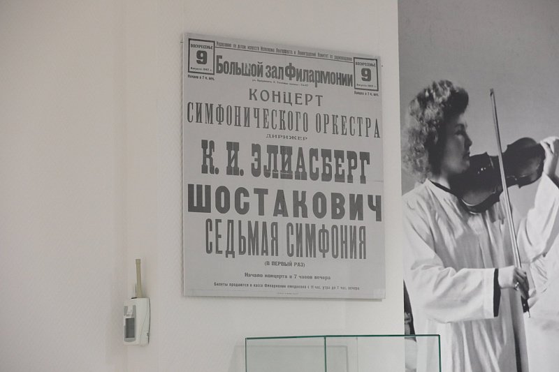 На выставке представлены радио-тарелка, через которую в то время шло вещание, подлинники концертных программ, афиши, личные вещи музыкантов, творивших в осажденном городе, в том числе камертон и дирижерская палочка Карла Элиасберга. Кстати, во время блокады оркестр под его управлением дал более двухсот концертов.