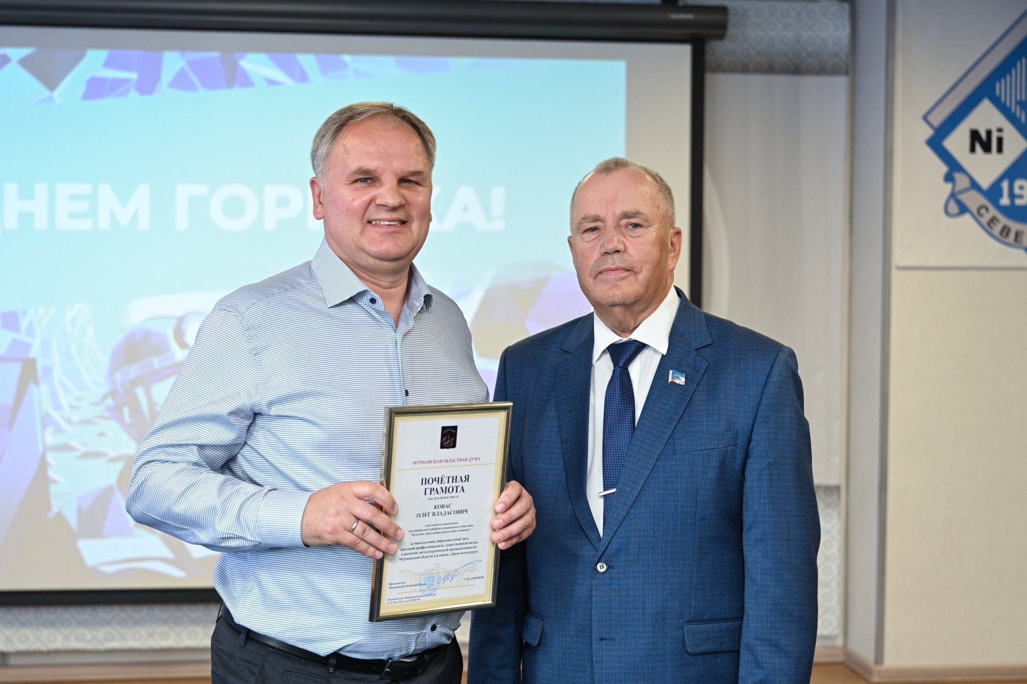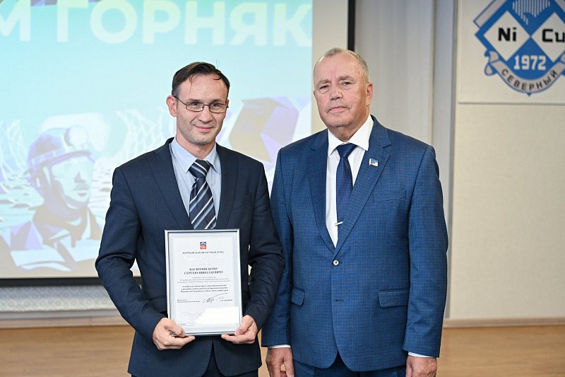 Глава регионального парламента вручил работникам Кольской ГМК награды областной Думы: Почетную грамоту – Олегу Ковасу и Благодарственное письмо – Сергею Васютинскому. Сергей Дубовой отдельно поблагодарил за нелегкий труд, верность профессии и любовь к заполярной земле ветеранов производства, пожелав всем горнякам новых профессиональных достижений, безопасной и плодотворной работы.
