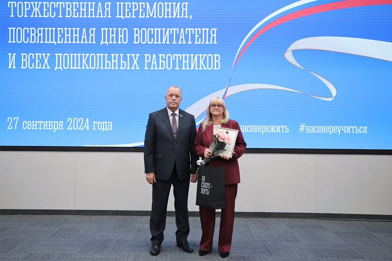 В Мурманске состоялось торжественное мероприятие, посвященное Дню воспитателя и дошкольных работников. В нем приняли участие глава региона Андрей Чибис, спикер регионального парламента Сергей Дубовой, председатель профильного комитета областной Думы Алексей Гиляров, министр образования и науки Мурманской области Диана Кузнецова, депутат Государственной Думы Татьяна Кусайко.