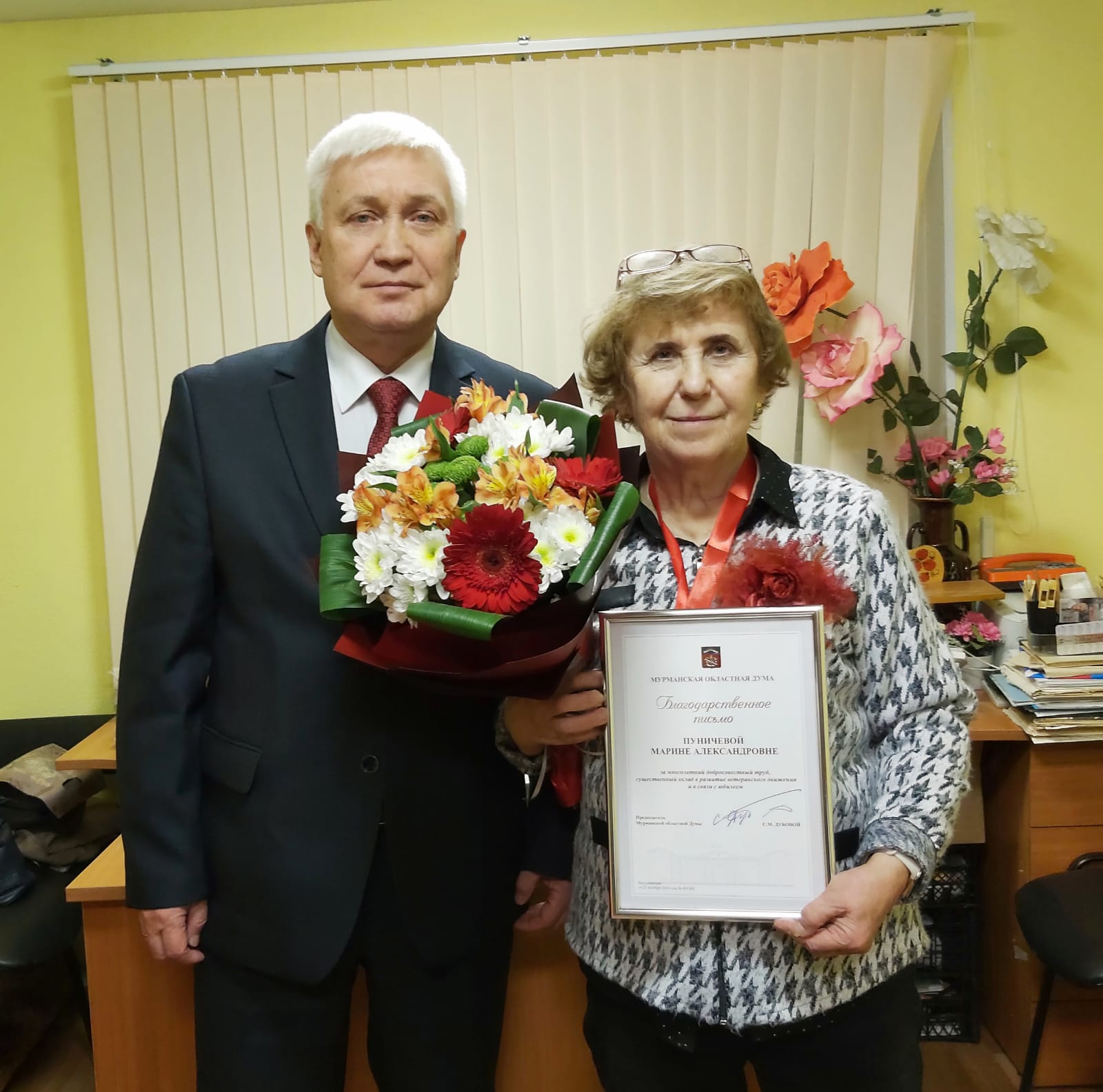 Принял участие в торжественном собрании, посвященном этой дате. Вручил Благодарственное письмо Мурманской областной Думы за многолетний добросовестный труд, существенный вклад в развитие ветеранского движения и в связи с юбилеем.