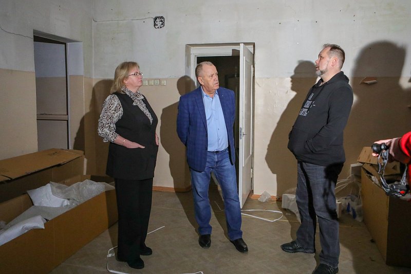 В центре внимания депутата был и Центр творчества и досуга, в котором в этом году стартовал капитальный ремонт здания, а также концертного зала с приобретением и установкой оборудования, мебели. Подрядчик демонтировал старые конструкции, электрику и вентиляцию на двух этажах. На 2 этаже дочищает полы, на 3 этаже отштукатурил стены на 30%.
