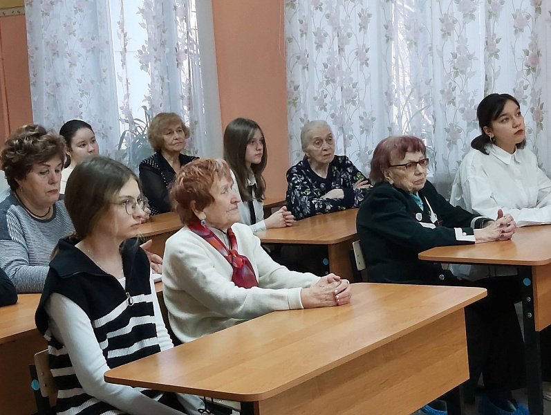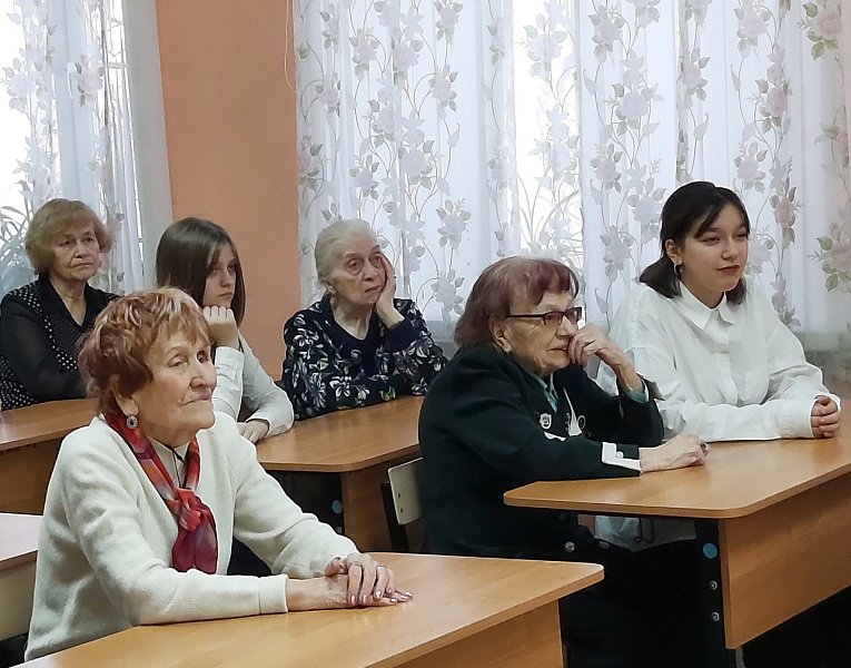 Главная тема встречи - празднование 80-летия Победы советского народа в Великой Отечественной войне. Речь шла о блокаде Ленинграда немецко-фашистскими войсками в годы Великой Отечественной войны. С использованием кинохроники, исторических фотографий и музыки рассказал о 872 днях блокады города.