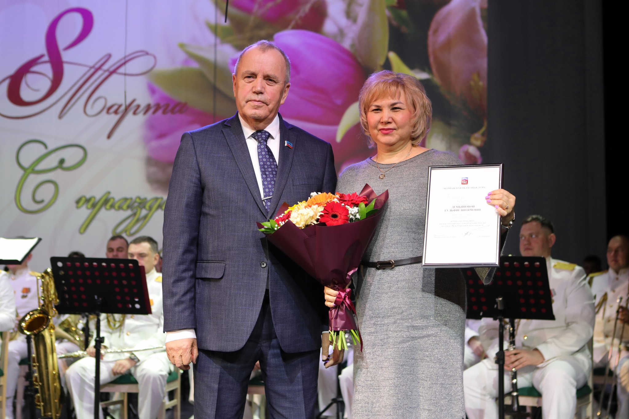 Парламентарий пожелал им здоровья, благополучия и весеннего настроения, вручил награды Мурманской областной Думы.