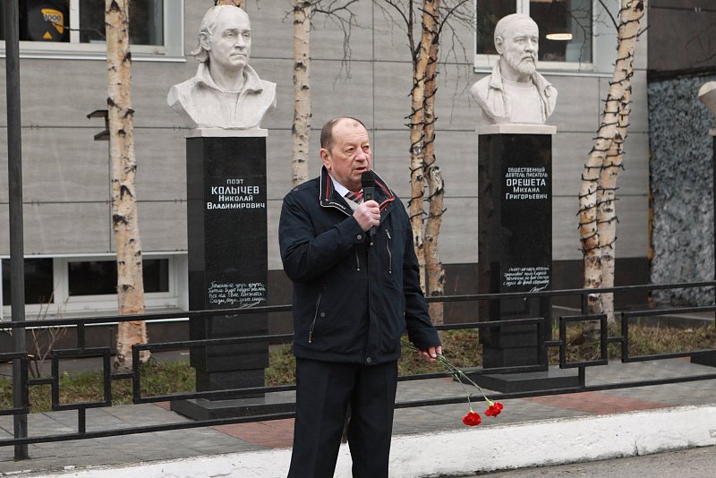 В торжественной церемонии в Аллее писателей у здания областной детско-юношеской библиотеки приняли участие депутаты регионального парламента Лариса Круглова и Михаил Белошеев, министр культуры Мурманской области Ольга Обухова, журналисты и коллеги – члены Мурманского отделения Союза писателей России, автор бюста – скульптор Александр Арсентьев, родственники.