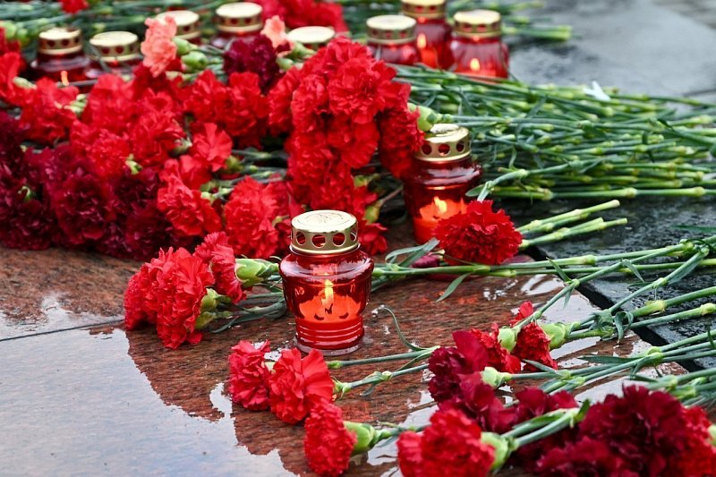 Участники акции почтили память погибших минутой молчания, возложили цветы к Вечному огню и свечи.