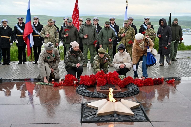 В 4 часа утра 22 июня на территории мемориала "Защитникам Советского Заполярья в годы Великой Отечественной войны" прошла Всероссийская акция "Свеча памяти". В ней приняли участие Губернатор Мурманской области Андрей Чибис, спикер регионального парламента Сергей Дубовой, депутаты областной Думы Алексей Гиляров и Роман Пономарев, командующий Краснознамённым ордена Ушакова Северным флотом Константин Кабанцов, представители силовых структур, молодёжных и патриотических объединений, северяне.