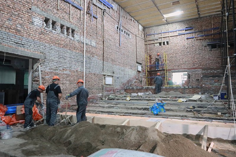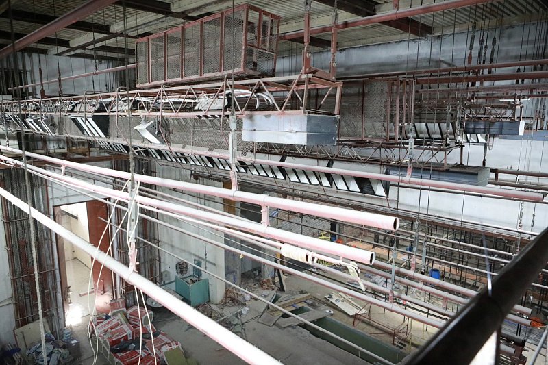Следующей локацией стал Центр культурного развития "Прометей", где в конце прошлого года стартовал капитальный ремонт. Уже сделано половина самых трудоемких работ, в частности, заменена проводка, проведена вентиляция, обновляется концертный зал, приобретено оборудование, мебель.