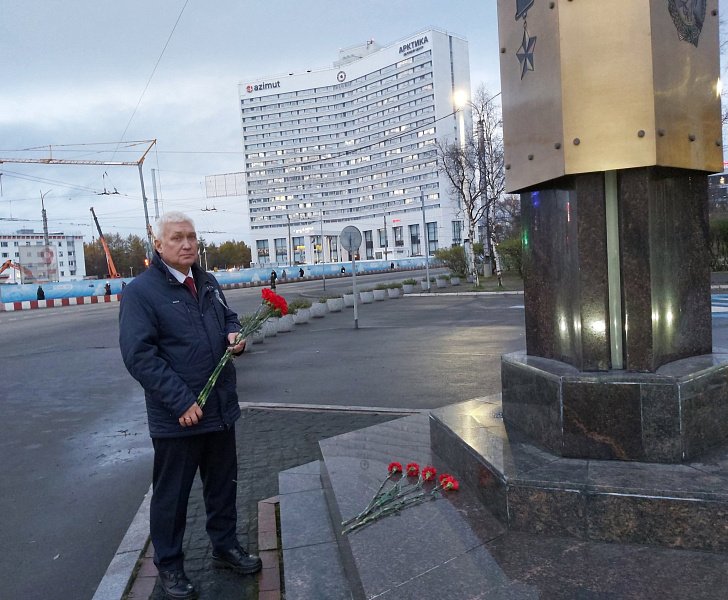 Принял участие в торжественном митинге на мемориале Защитникам Советского Заполярья, в котором участвовали мурманчане различных возрастов, почтившие память Героев.