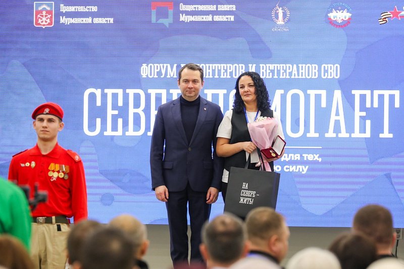 Глава региона вручил почетный знак Губернатора Мурманской области «За оказание помощи и поддержку при проведении СВО "СВОих не бросаем" волонтерам, внесшим существенный вклад в общественную и благотворительную деятельность, направленную на помощь Вооруженным силам.