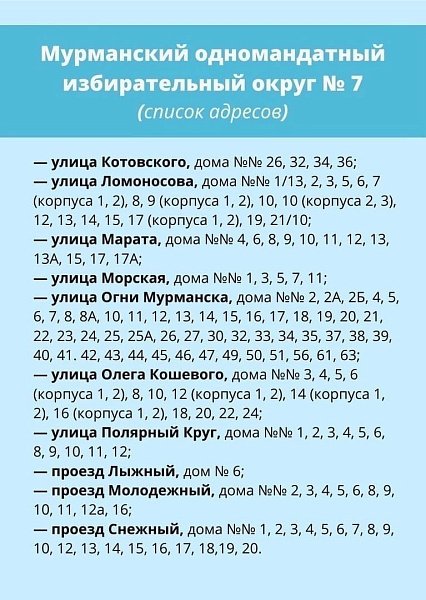 Напоминаю адреса Мурманского одномандатного избирательного округа № 7.
