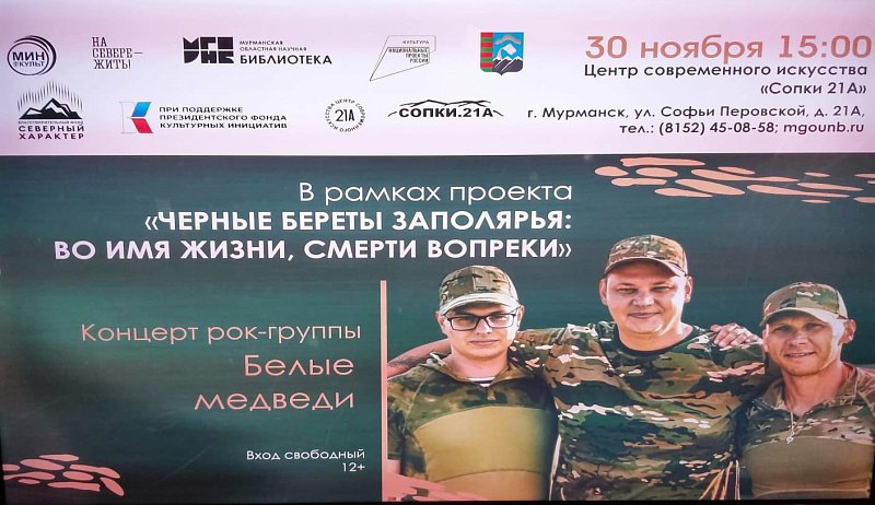 Все мероприятие сопровождалось выступлением рок-группы "Белые медведи". Во встрече также приняли участие военнослужащие, мурманские писатели, руководство благотворительного фонда и неравнодушные мурманчане.