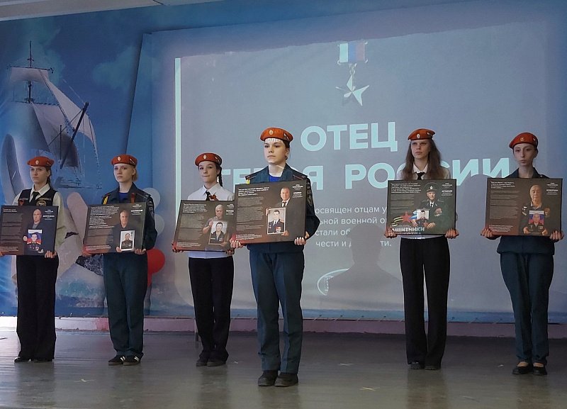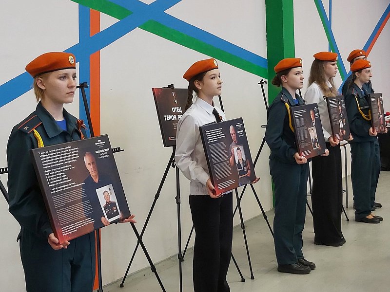 Ведущие фотовыставки рассказали о жизненном пути и подвигах Героев России, объявили минуту молчания. Творческие коллективы учащихся исполнили патриотические песни.