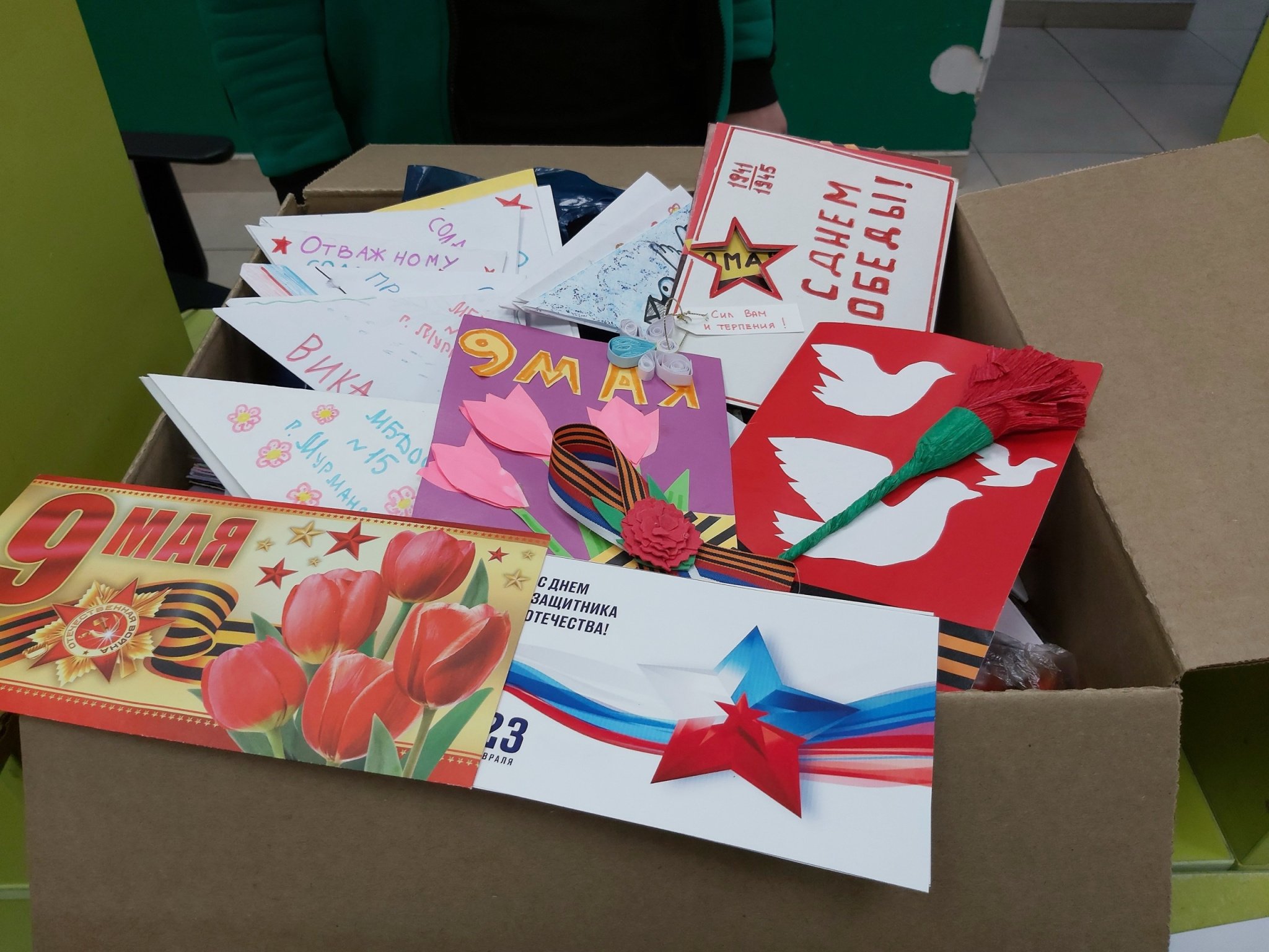 28 апреля все письма были отправлены. Нашу инициативу поддержали образовательные организации: детские сады № 15, № 34, Кадетская школа города Мурманска, гимназии № 5, № 9, Молочненская школа, Дворец культуры «Судоремонтник», ветеранские организации.