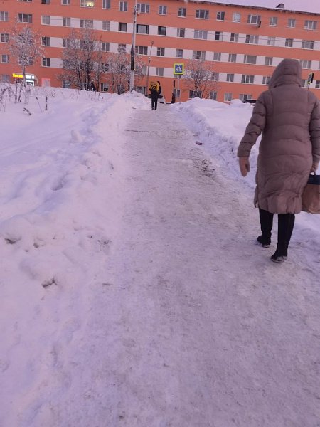 Для мам с детьми эта дорога к детскому саду стала настоящим испытанием из-за гололеда и неубранного снега.